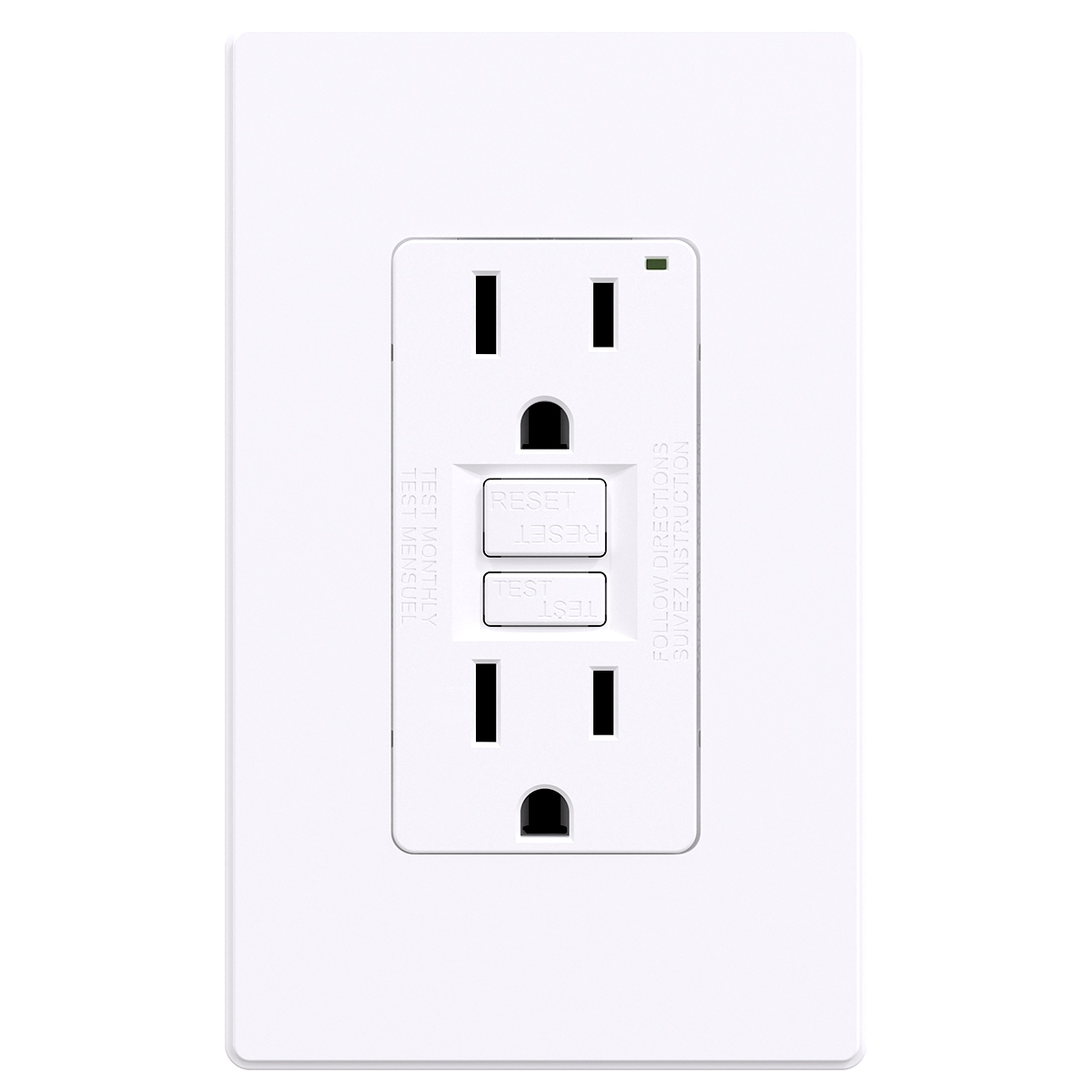 Decora GFCI Receptacle with Wall Plate 15Amp White