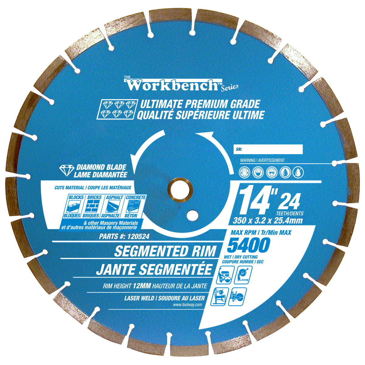 Diamond Saw Blade 14in 24T Laser Weld Segmented