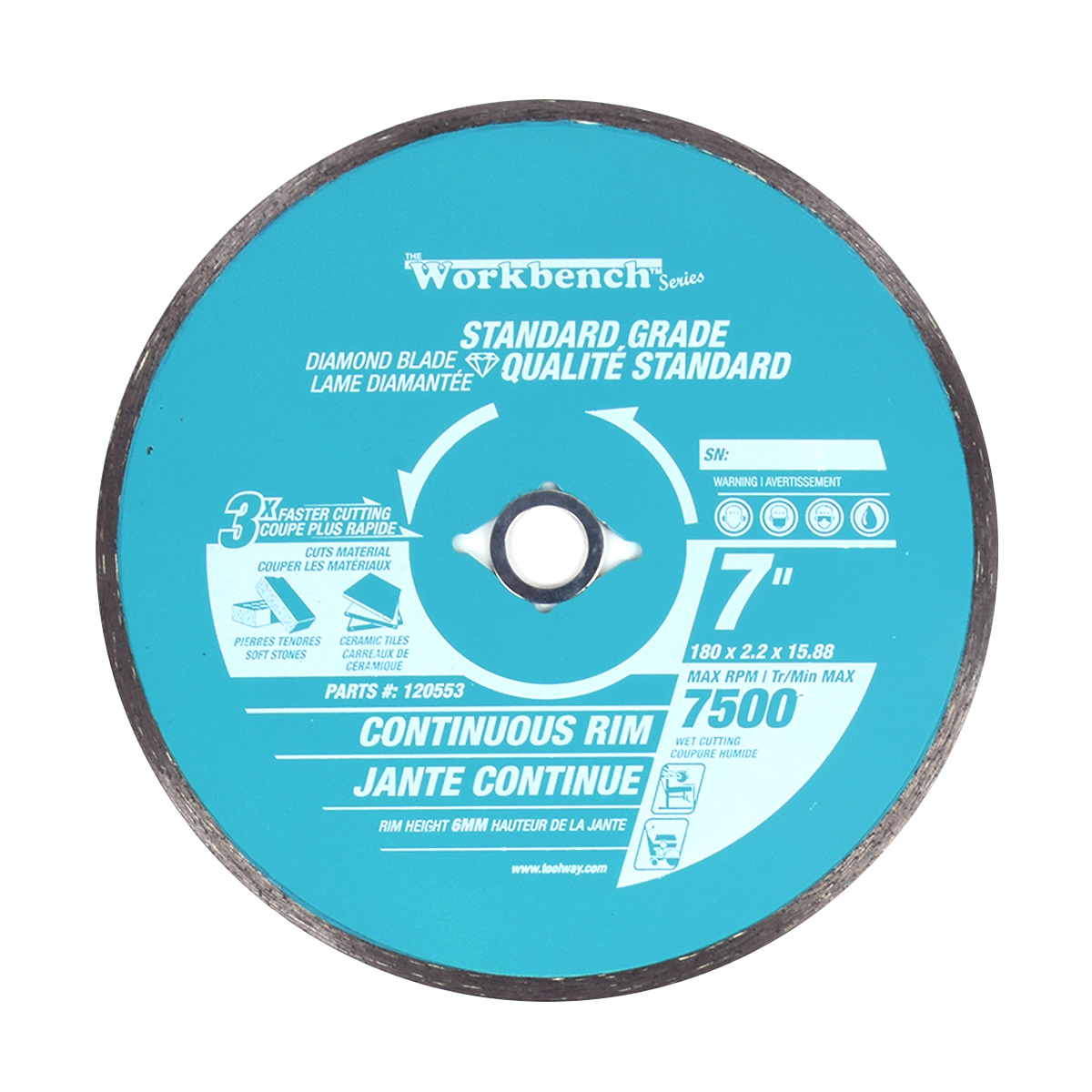 Continuous rim diamond saw blades are perfect for fine cuts in Brick, Block, Granite, Concrete.