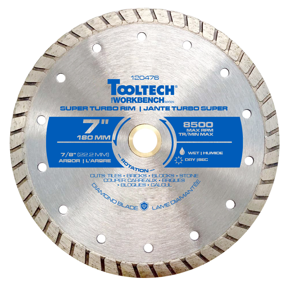 Super Turbo diamond saw blades are perfect for clean cuts in Brick, Block, Granite, Concrete.
