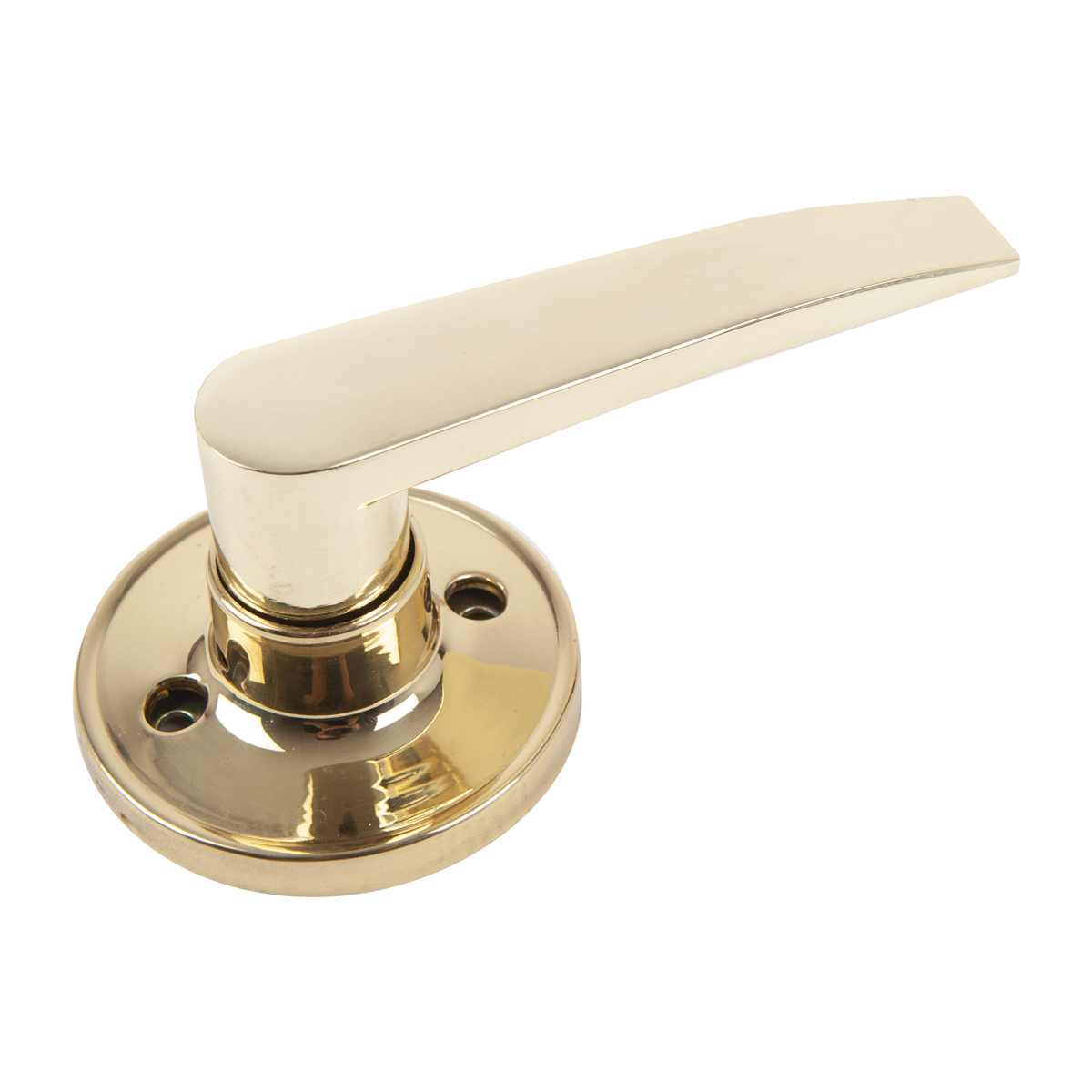 Dummy door lock lever in polished brass finish.