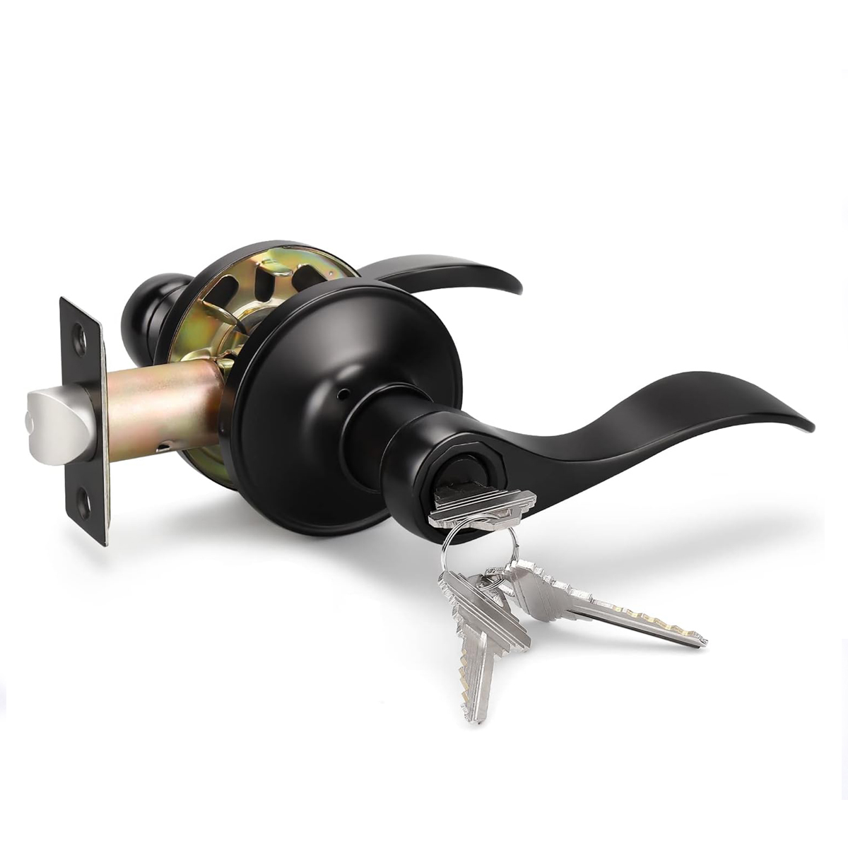 Door Lock Lever Entry Black Curved Handle