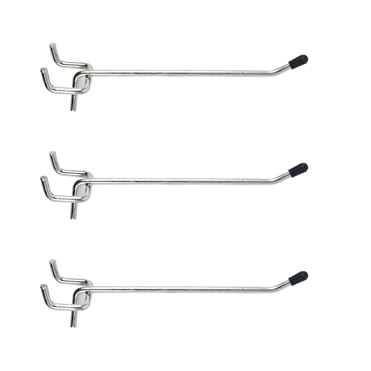 The stinson storage 3 piece 4in double prong pegboard hook.