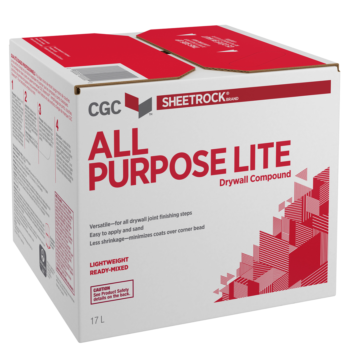 CGC Sheetrock® Brand Lite-Weight Taping Compound is a high-performance product specifically formulated for the professional drywaller. Designed for embedding joint tape and trims; this compound has been formulated to have great slip; spread; and open time so that the taping procedure can be accomplished quickly and easily. It also provides maximum bond and crack resistance to ensure high performance. All of this comes in a light weight formula which is easy to work with reducing labour costs and improving the quality of the job. *Limited distribution.