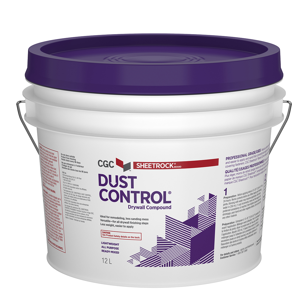 CGC Sheetrock® Brand Dust Control® Drywall Compound is a revolutionary product that reduces the mess associated with sanding drywall compound. CGC Sheetrock® Brand Dust Control® Drywall Compound goes on the wall as well or better than other leading drywall compounds; with the added value that when sanding most of the dust falls straight to the floor and doesn't float around in the air. It is an all purpose compound that can be used to embed tape; fill and finish gypsum panels; bead; trims and fasteners. It can also be used for skim-coating over dry and non-glossy surfaces.