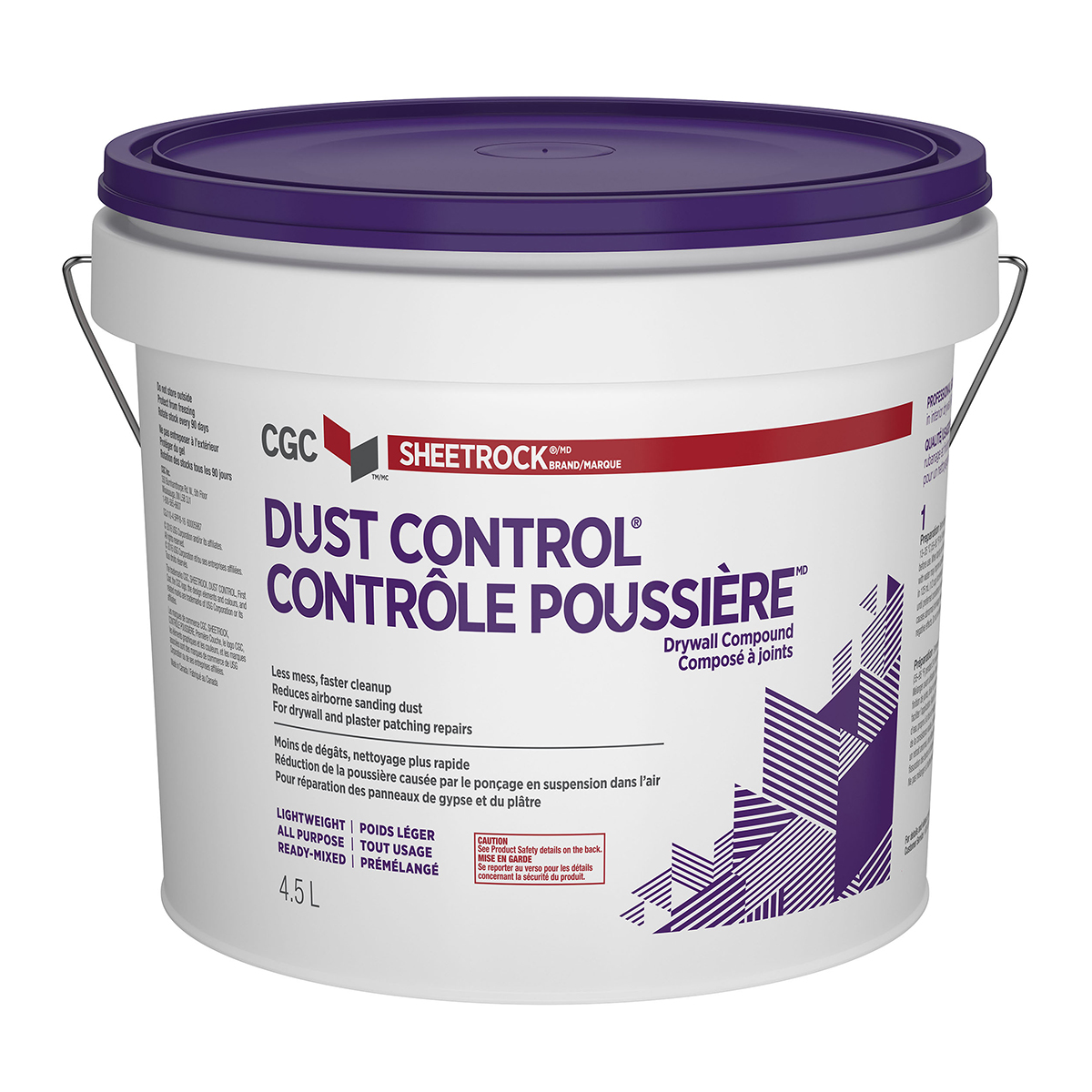 CGC Sheetrock® Brand Dust Control® Drywall Compound is a revolutionary product that reduces the mess associated with sanding drywall compound. CGC Sheetrock® Brand Dust Control® Drywall Compound goes on the wall as well or better than other leading drywall compounds; with the added value that when sanding most of the dust falls straight to the floor and doesn't float around in the air. It is an all purpose compound that can be used to embed tape; fill and finish gypsum panels; bead; trims and fasteners. It can also be used for skim-coating over dry and non-glossy surfaces.