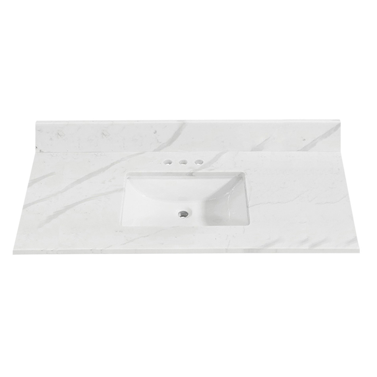 Engineered marble top + undermounted rectangular sink.