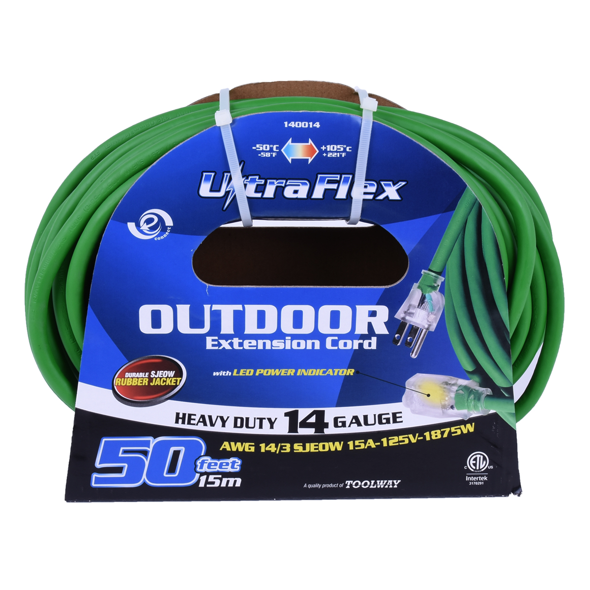 Extension Cord Outdoor SJEOW 14/3 1-Outlet Lighted 50ft Green