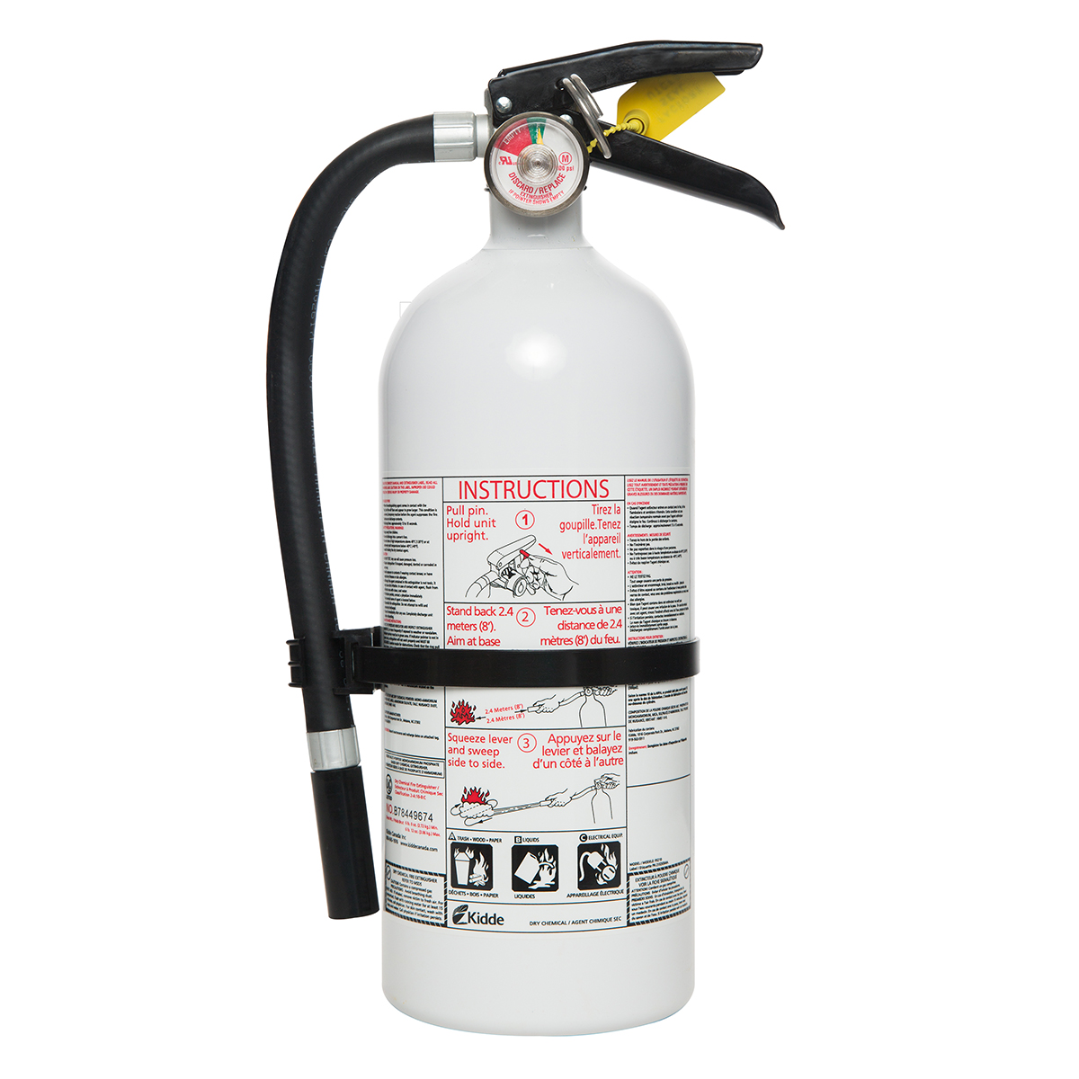 Suitable for use on Class A (trash; wood & paper); Class B (liquids & gases) and Class C fires (energized electrical equipment). The 21007170P Home Series Home/Office white fire extinguisher comes equipped with a tough metal handle and is fitted with a pressure gauge that provides at-a-glance status and a flexible hose for ease of aiming.