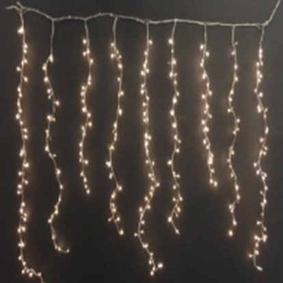 Firecracker 3-joint plug in string curtain light set with 960 warm white twinkling lights.