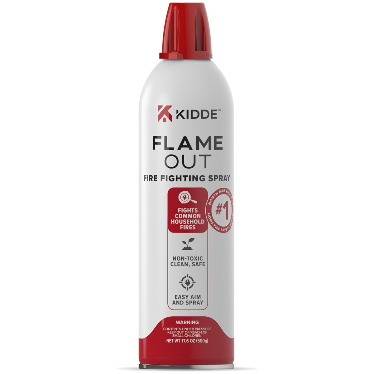 Stop small fires from becoming big fires with Flame Out Fire Fighting spray."".