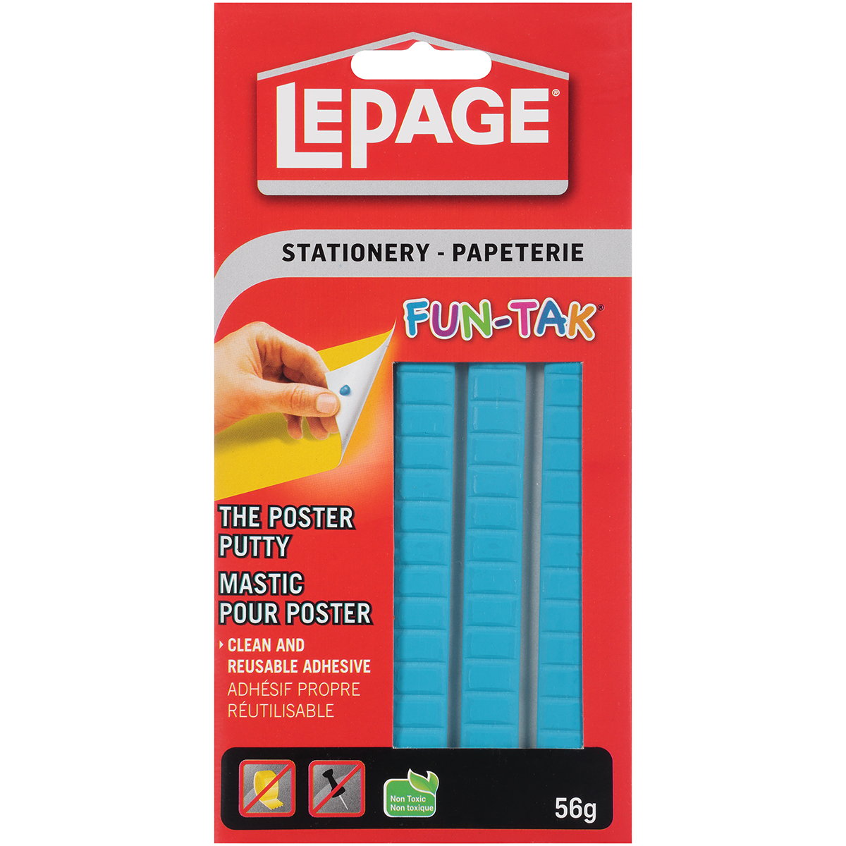 - Lepage fun-tak mounting putty is a reusable; repositionable adhesive that is a convenient alternative for tape; tacks; staples and magnets for use at home; school and the office.