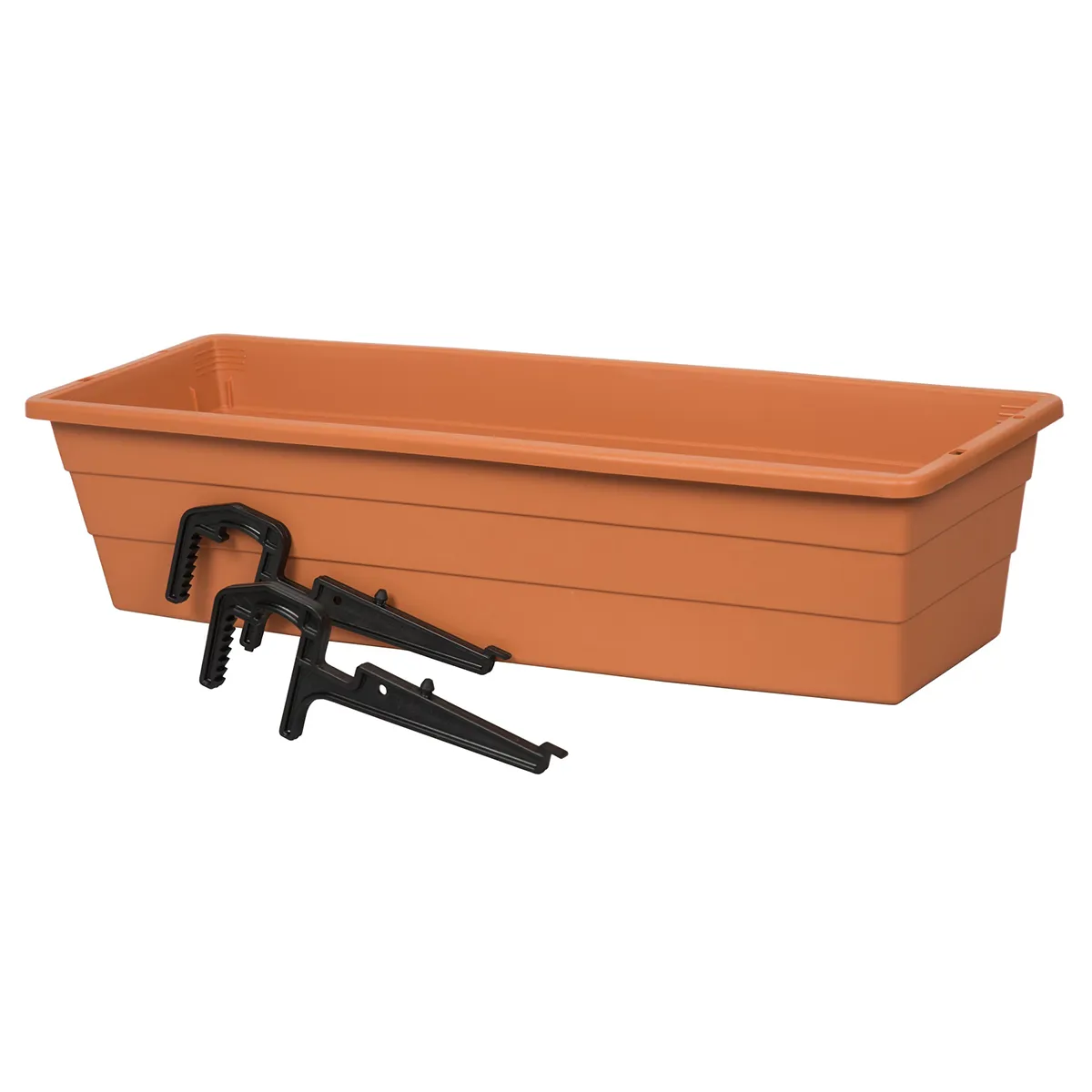 Futura Window Box Planter Plastic With Brackets 18x6.75x4.5in Terracotta