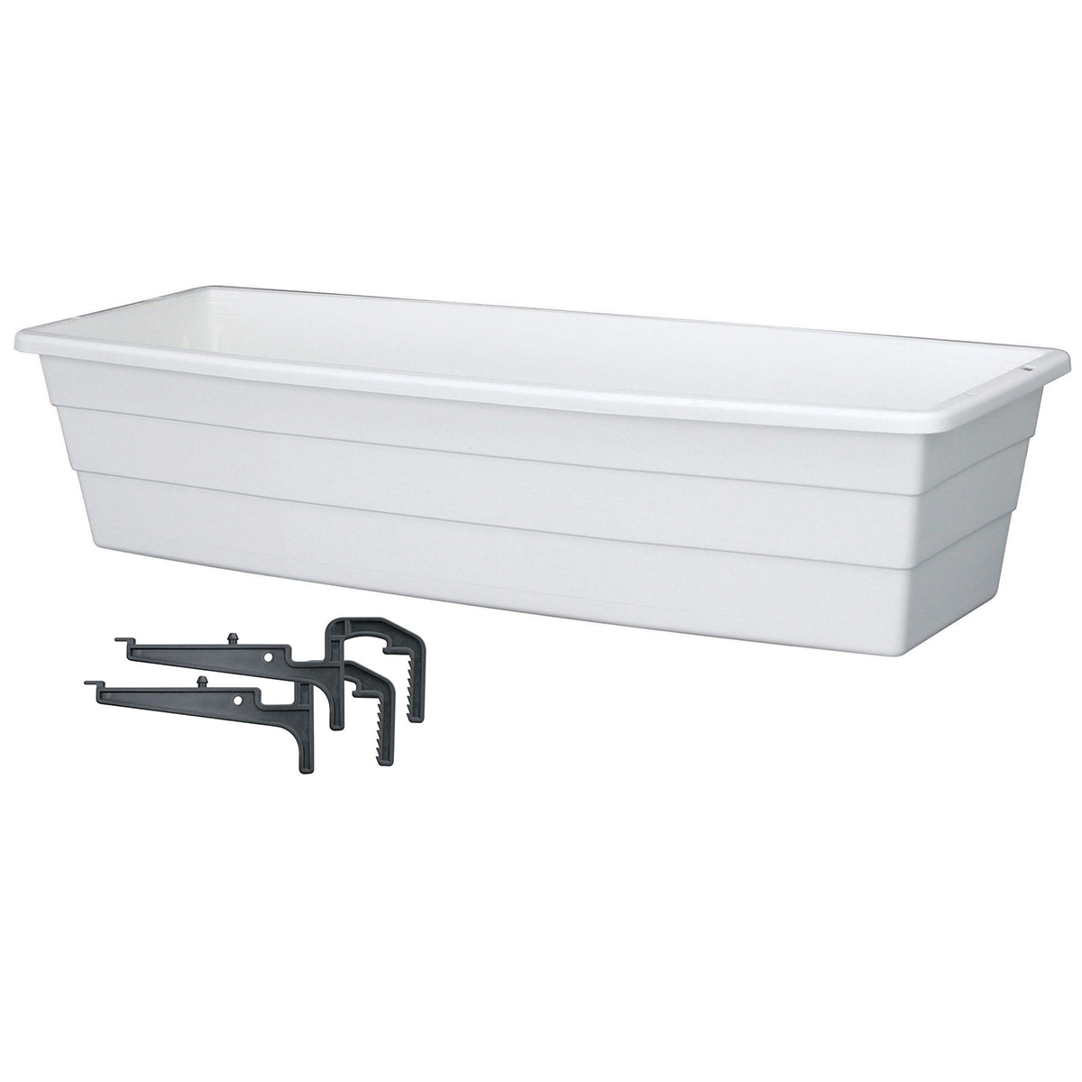 Futura Window Box Planter Plastic With Brackets 31.75x8.5x6.5in White