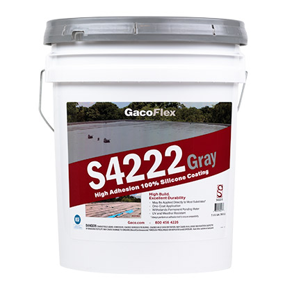 GacoFlex S42 Series is a 100% silicone roof coating solution for renewing your weathered roof. This high adhesion coating can be installed over virtually any existing roof substrate* creating a durable; seamless membrane that helps protect the roof from permanent ponding water; ultraviolet light and severe weather.GacoFlex S42 Series covers more surface area with less material than many other competitive silicones; exhibits outstanding peak hide coverage on granulated surfaces; and with its strong adhesion to multiple types of surfaces; it eliminates the need for an epoxy primer in many cases; allowing for faster installation.