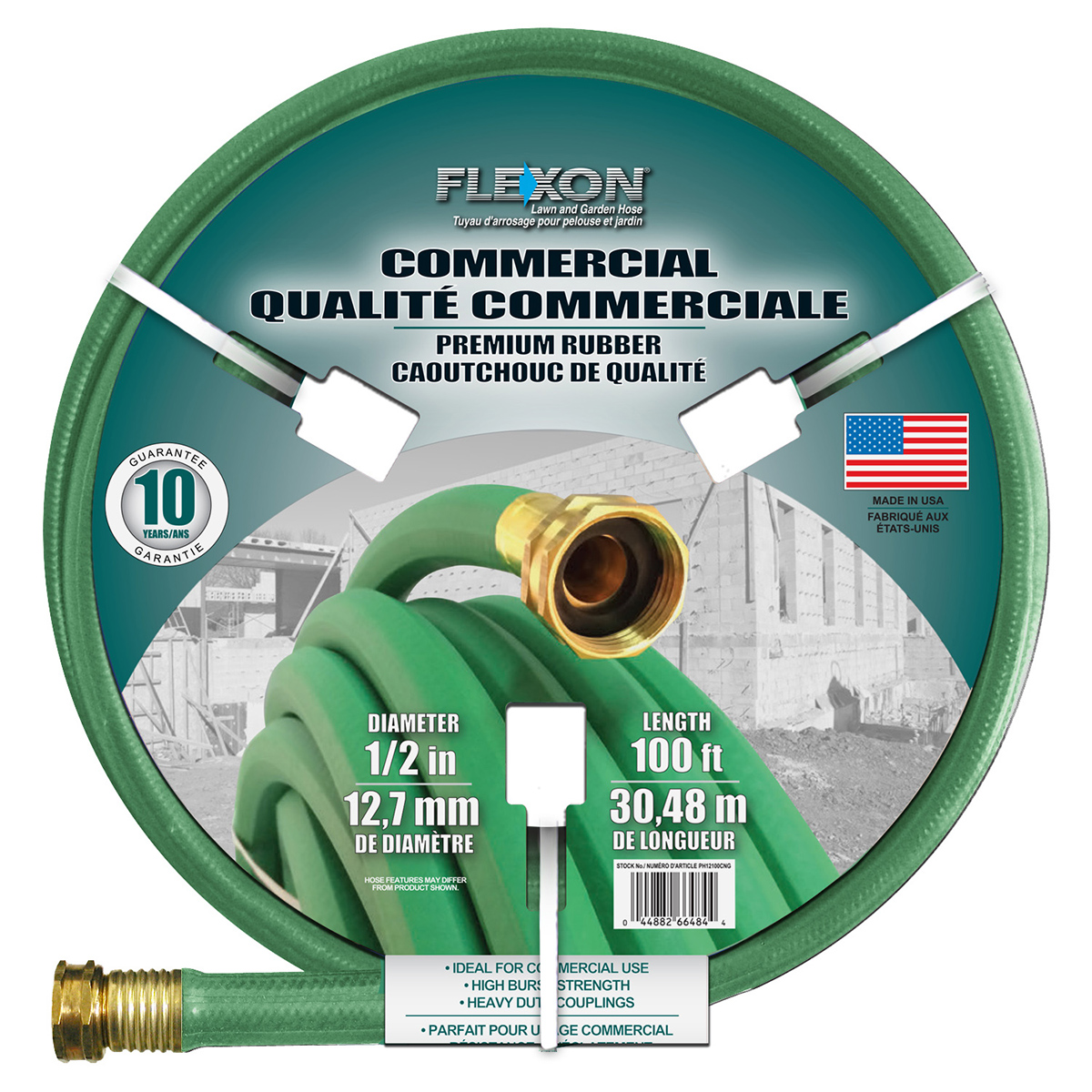 This Flexon Premium Rubber Garden Hose is a premium commercial grade rubber hose. This hose boasts a high burst strength and traffic grade; crush proof couplings. Best used for job sites; landscaping and cold weather conditions.
