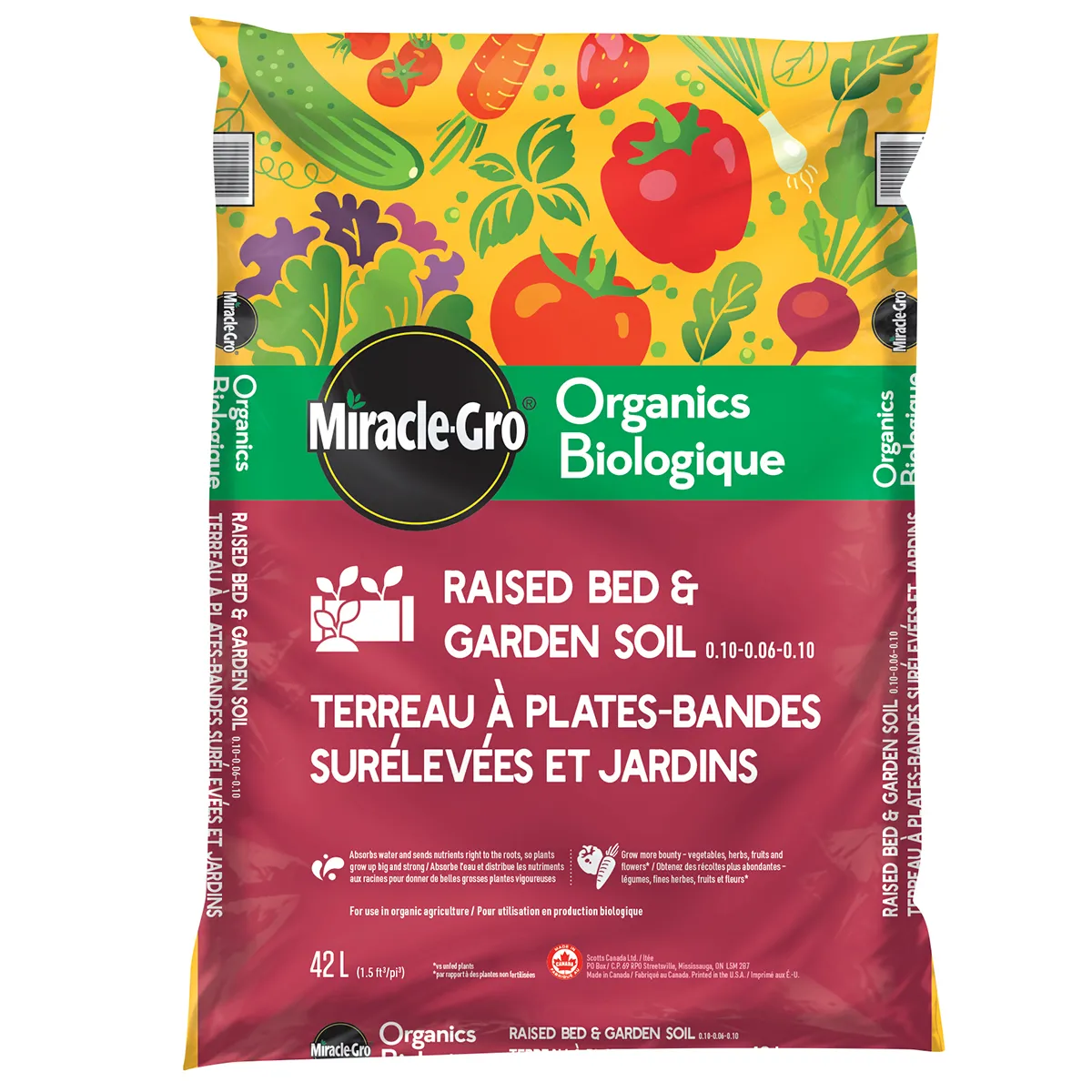 Want to raise a big, happy family of plants in your raised garden bed. Start them off right with Miracle-Gro Organics Garden Mix. Ecocert certified, this mix is loaded with rich organic ingredients and high-quality nutrients that help give your fruits, veggies and flowers what they need. Helps plants absorb water and maintain that moisture, too. Plus, it sends nutrients where they’re needed most – right to the roots. Plants grow up big and strong so you get to enjoy harvesting a bigger bounty of vegetables, herbs, fruits, and flowers throughout the growing season. Specifically formulated for raised bed gardens and in-ground gardens, this mixture is ready to use with no mixing required. Even better, it delivers the astonishing Miracle-Gro results you expect with the natural and organic ingredients you want for your garden. Oh yea, no, for sure. We definitely elevated raised bed gardening with this mix.