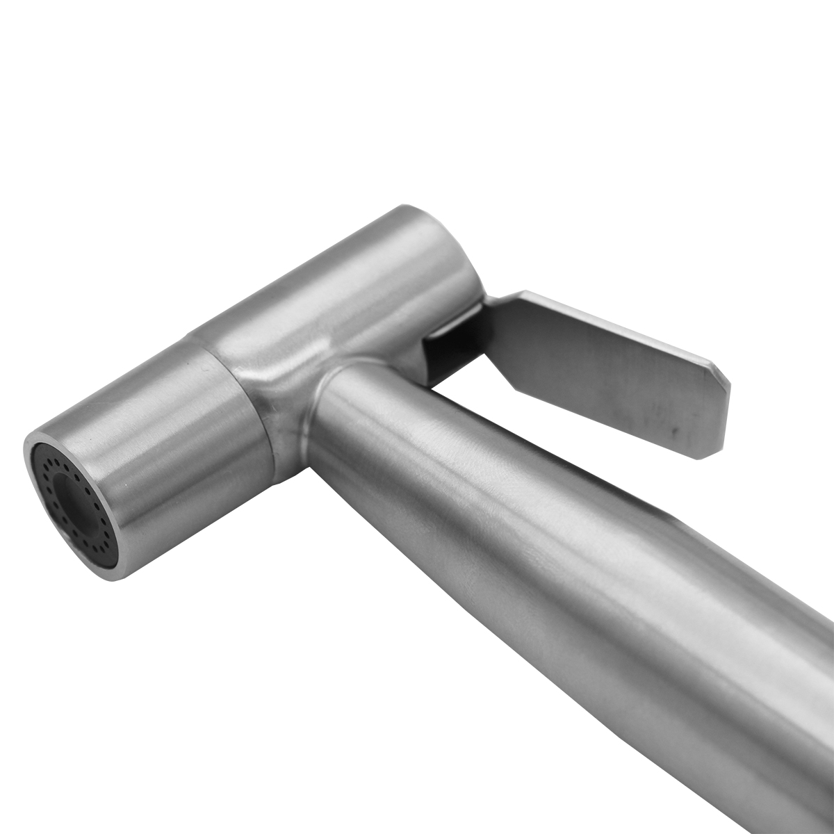 This stainless-steel hand-held sprayer allows you to quickly and affordably turn your existing toilet into a hygienic bidet. With built in water pressure control, This unit can also function as a cloth diaper sprayer or assist in rinsing out your toilet bowl when cleaning. The included 7/8” chromed cold water t-adapter will fit most standard water lines and the multi-piece hardware kit makes installation A breeze. Also comes with a wall mount bracket for sprayer Docking and a 30” braided hose for an extended reach.