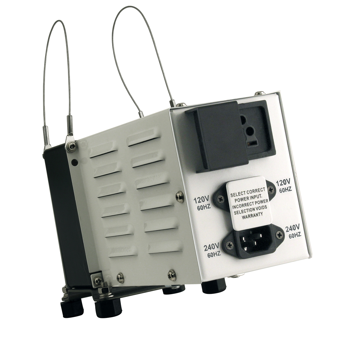 Dual power inputs easily switch voltage from 120 to 240 volt power.
