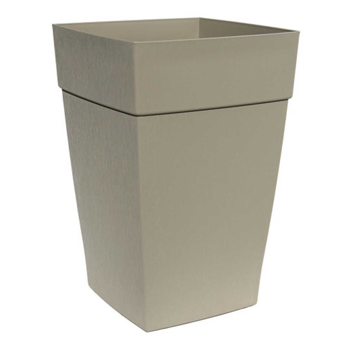 Add color and style with this 16 in x 16 in x 24 in (41 cm x 41 cm x 61 cm) tall self-watering planter. It holds 61.1 l of soil. It’s manufactured in canada using recyclable; food safe raw materials which are UV treated to resist damage for the sun’s harmful rays. Featuring an overflow protection system that is activated by drilling out the indentation on the outside of the bottom of the planter (for outdoor use). With a unique textured vertical finish; this planter is both durable and fashionable; thus allowing it to be used both indoors and outdoors. Now you never have to worry about overwatering or by heavy rain drowning your plants; which allows you to leave your beautiful plants unattended for longer periods of time.