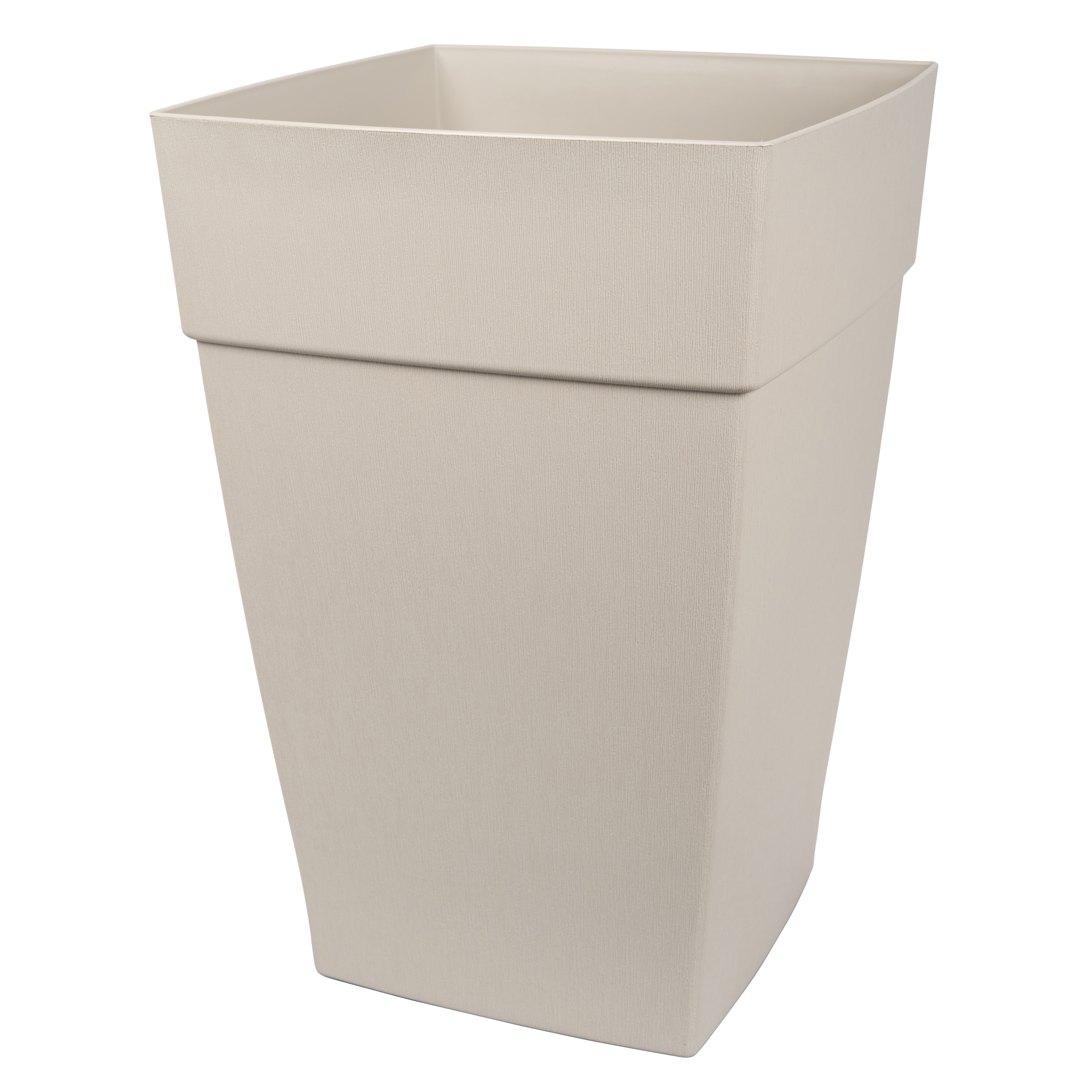 Add color and style with this tall self-watering planter. It holds Manufactured in Canada using recyclable; food safe raw materials which are UV treated to resist damage for the sun’s harmful rays. Featuring an overflow protection system that is activated by drilling out the indentation on the outside of the bottom of the planter (for outdoor use). With a unique textured vertical finish; this planter is both durable and fashionable; thus allowing it to be used both indoors and outdoors. Now you never have to worry about overwatering or by heavy rain drowning your plants; which allows you to leave your beautiful plants unattended for longer periods of time.