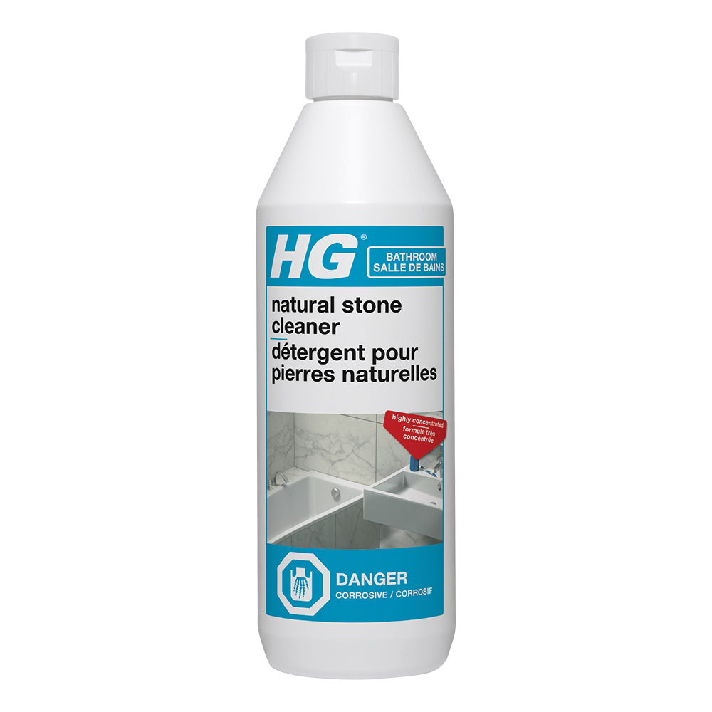 HG natural stone bathroom cleaner is a safe product for regular cleaning of marble and other calciferous natural stones in the bathroom. This highly concentrated product effectively removes stubborn dirt; soap residue; skin grease and minor scale deposits quickly and efficiently.