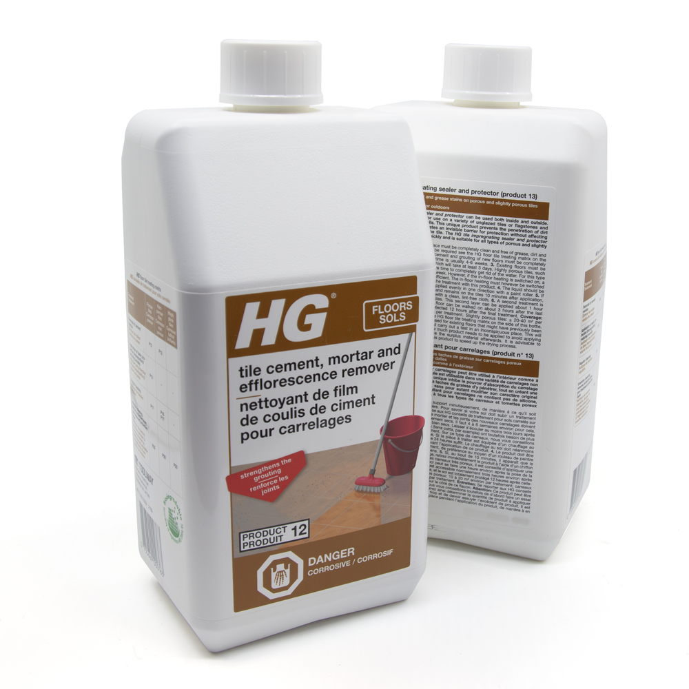 - HG tile cement; mortar and efflorescence remover (product 12).