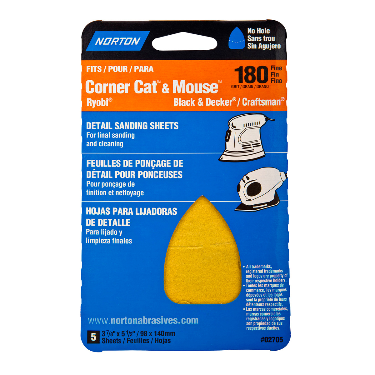 180 grit; fine; corner cat/mouse sander sheets; iron shaped hook & loop.