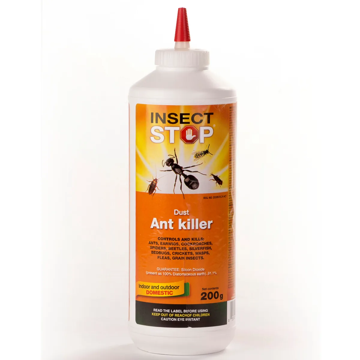 Diatomaceous Earth is an effective and safe way to control a large number of crawling and ground moving household and garden pests including earwigs; millipedes; silverfish; cockroaches; ants; centipedes; fleas; carpet beetles and other crawling insects. A long-lasting organic pest control product; Diatomaceous earth is sprinkled into cracks and crevices where bugs hide and on surfaces where they travel.Made from ground fossil shells; diatomaceous earth is safe for organic gardening. The long-lasting powder pierces the skin of crawling insects or; if ingested; their internal organs; causing dehydration and death. Insect Stop is considered 'food-grade' with 93% purity.