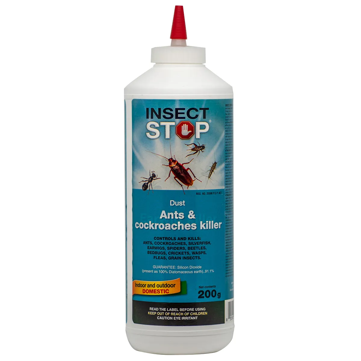 Diatomaceous Earth is an effective and safe way to control a large number of crawling and ground moving household and garden pests including earwigs; millipedes; silverfish; cockroaches; ants; centipedes; fleas; carpet beetles and other crawling insects. A long-lasting organic pest control product; Diatomaceous earth is sprinkled into cracks and crevices where bugs hide and on surfaces where they travel.Made from ground fossil shells; diatomaceous earth is safe for organic gardening. The long-lasting powder pierces the skin of crawling insects or; if ingested; their internal organs; causing dehydration and death. Insect Stop is considered 'food-grade' with 93% purity.