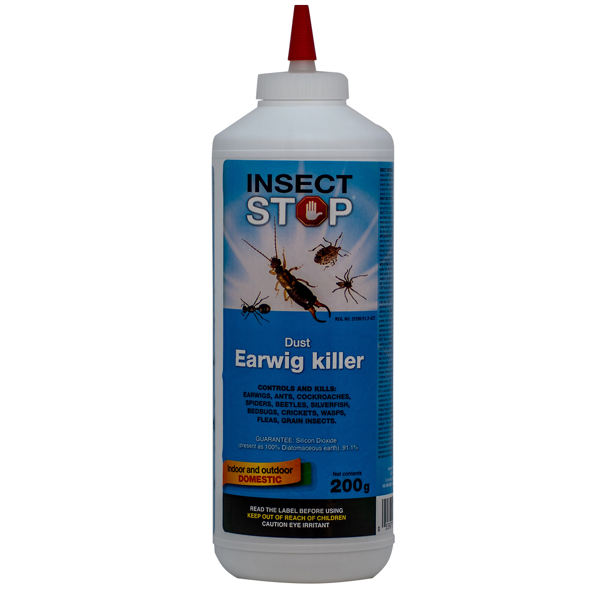 Diatomaceous Earth is an effective and safe way to control a large number of crawling and ground moving household and garden pests including earwigs; millipedes; silverfish; cockroaches; ants; centipedes; fleas; carpet beetles and other crawling insects. A long-lasting organic pest control product; Diatomaceous earth is sprinkled into cracks and crevices where bugs hide and on surfaces where they travel.Made from ground fossil shells; diatomaceous earth is safe for organic gardening. The long-lasting powder pierces the skin of crawling insects or; if ingested; their internal organs; causing dehydration and death. Insect Stop is considered 'food-grade' with 93% purity.