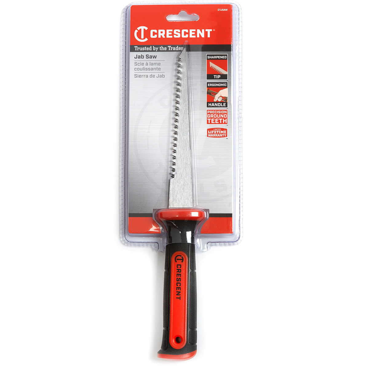 - Crescent’s jab saw has a sharpened tip offering a knife-like edge for easier material penetration.