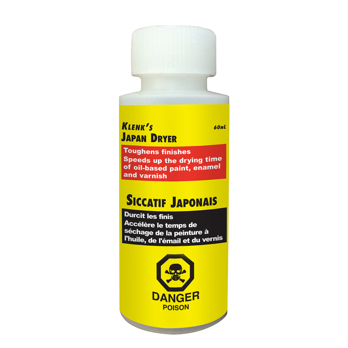 Klenk's Japan Dryer toughens finishes. It speeds up the drying time of oil-based paint; enamel; and varnish. Toughens finishes. It is especially effective when weather is damp or cool.