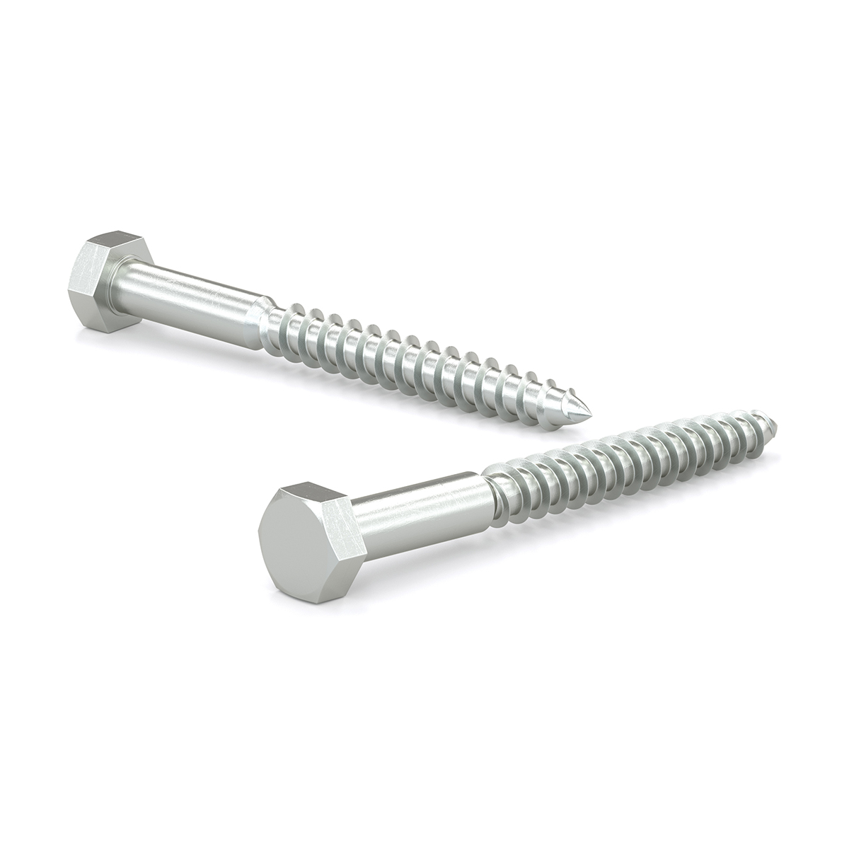 These lag bolts are made of zinc-plated steel. They have a hexagonal head and a partial coarse thread. Hex lag screws; also called a lag bolt; is a full-bodied threaded bolt with a hex head; spaced threads and a gimlet point. They are used mainly in wood construction. Zinc plating; retards the corrosion rate in a normal atmosphere.