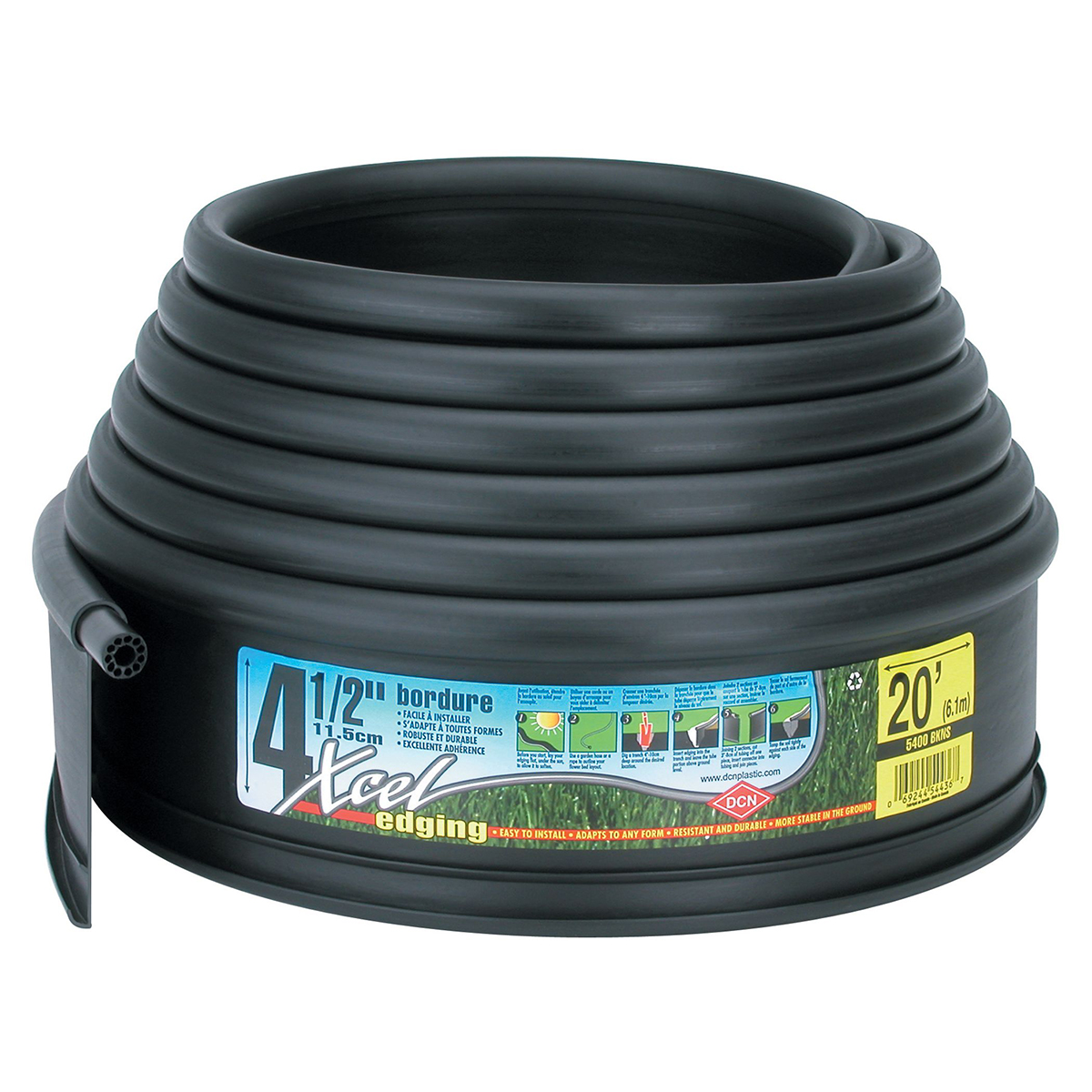 Dcn edging is made of a special blend including recycled and virgin materials which give it more flexibility; thus facilitating the installation process.