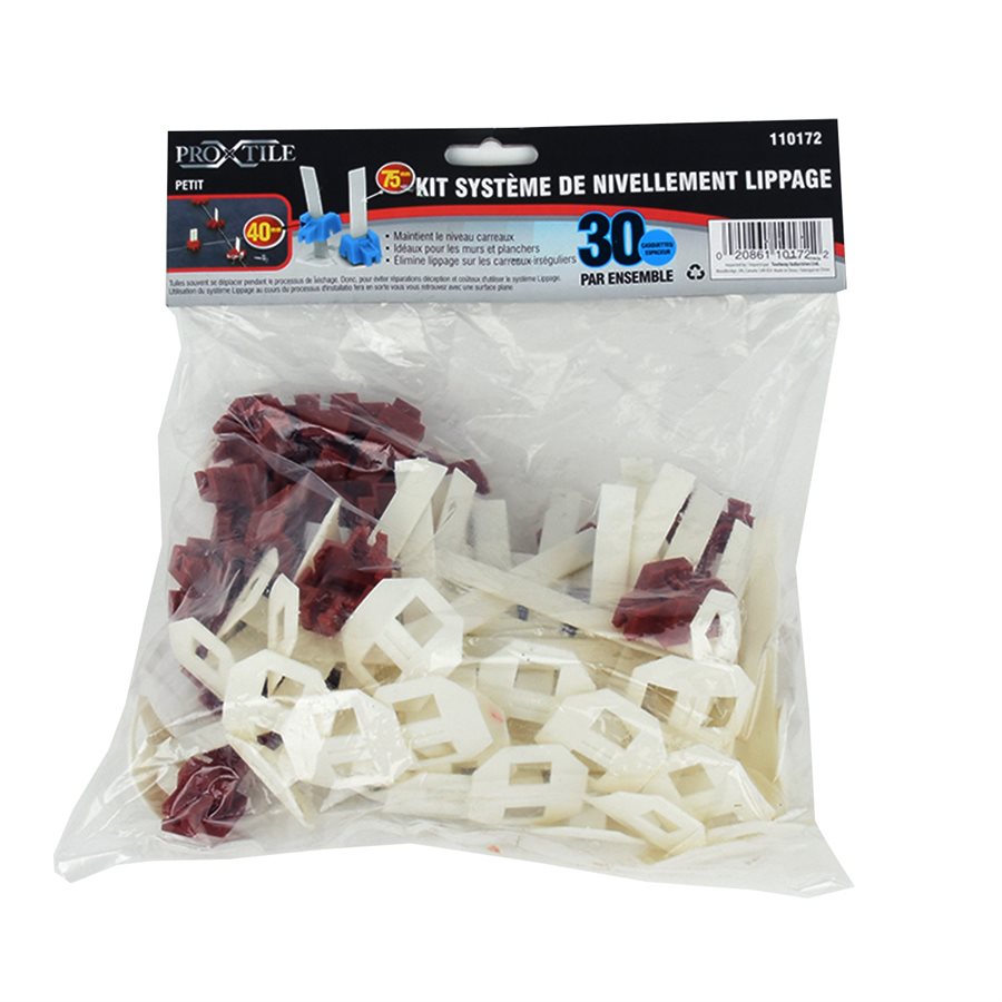 - Includes: 30 Strips 75mm; 30 Caps 40mm and 1 lippage Levelling pliers.