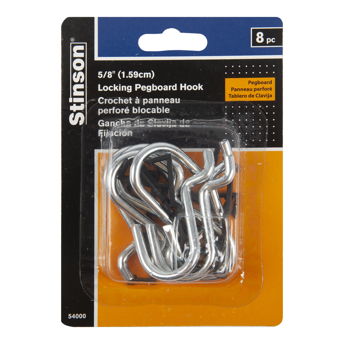 Locking Curved Pegboard Hooks 5/8in 8Pk