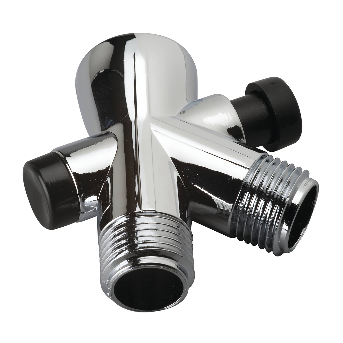 M1940 2-way dual function shower diverter. Durable chrome plated plastic construction. Lever action transfer valve. For use with both a personal shower and a showerhead.