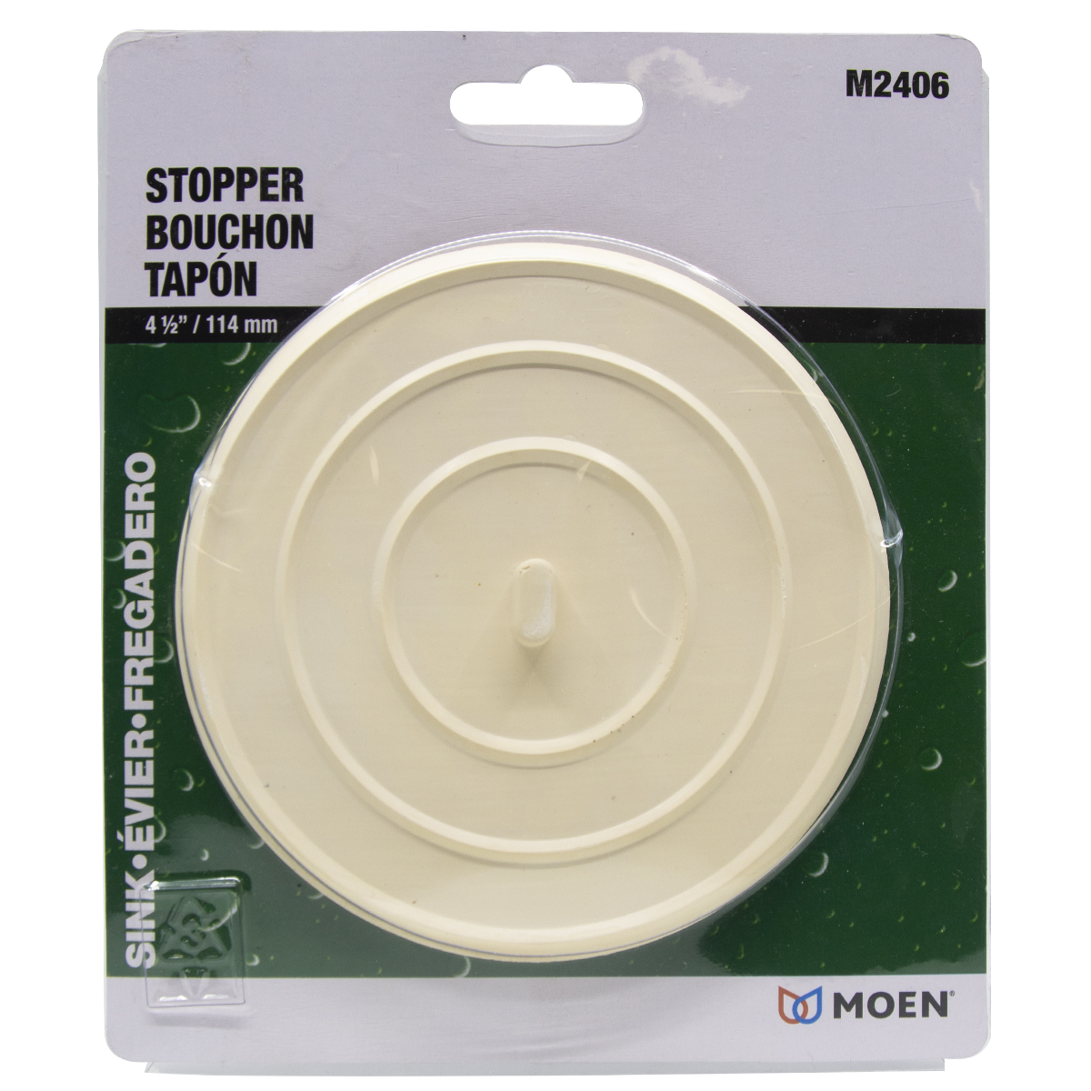 - Easy to install Stoppers; in various materials; help protect drains from debris and control water release in your sink or tub. Moen's packaging is color coded by project. Look for moen packaging in Green.