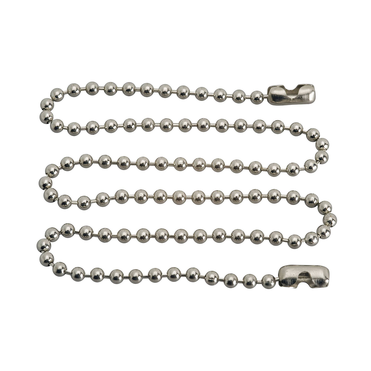M2460 14 inch Stopper Chain made of Nickel plated brass bead chain and brass couplings resist rust an corrosion. It is Easy to install.