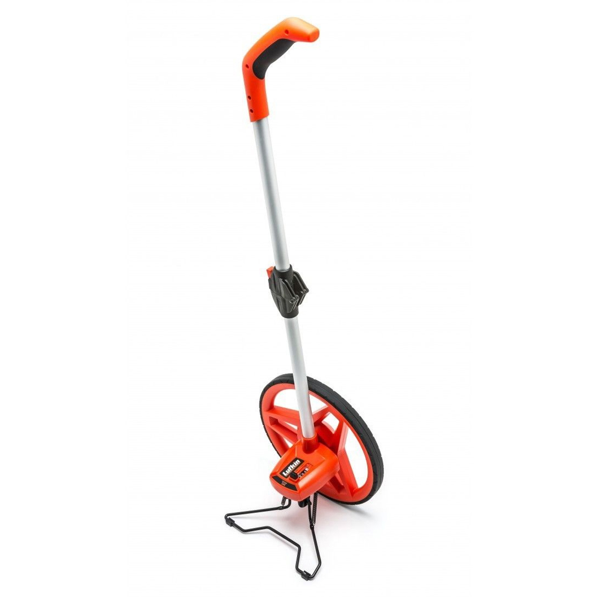 The Lufkin® Professional 12in measuring wheel has a proven design that keeps things simple with one big improvement that gives it best-in-class durability. The new bolstered folding handle joint is designed to survive when other handles break. It's made to open without damage when subjected to severe shock. Large wheel model ideal for uneven terrain or long indoor measurements. Retractable handle adjusts for comfortable measurements; folded length 30 in; extended length 41 in. Suitable for measuring vertical; horizontal or curved surfaces; the large Crescent Lufkin professional SAE measuring wheel displays surface dimensions in ft and in for quick; accurate distance calculations. It features a 12in wheel with a rubber tire for superb traction on the uneven terrain of job sites or long indoor expanses. The analog counter dial calibrated to the wheel counts to 10;000 ft before rolling over to 0.