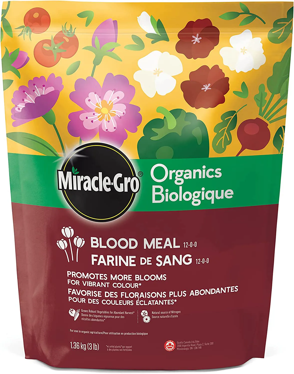 Easily absorbed Boost growth and brighten up your garden with Miracle-Gro Nature's care organic blood meal. A natural source of slow-release nitrogen; this premium garden helper produces greener leaves; beautiful blooms and vibrant-colored vegetables.