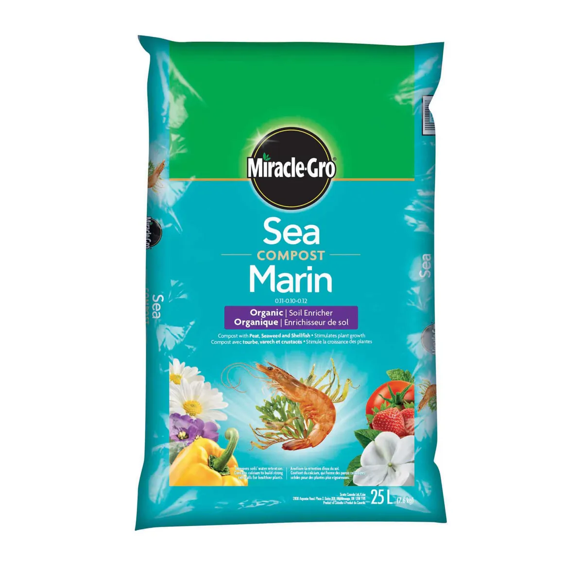 Miracle-Gro® Organic Sea Compost Soil is a premium blend of organic materials that are specially formulated to improve soil structure and promote healthy plant growth. This product contains a unique blend of organic matter; including seaweed; and crustaceans which provides essential nutrients and minerals to your plants. This product is ideal for a variety of plants; especially those needing calcium or growing in sandy soils. It benefits: Vegetables: Perfect for heavy feeders like tomatoes; peppers; and squash; helps prevent blossom end rot in tomatoes. Flowers: Enhances bloom production and overall health in both annuals and perennials. Fruit Trees and Bushes: Meets high nutrient demands; promoting healthy growth. Plants in Sandy Soils: Seaweed content improves water retention; aiding plant growth in sandy conditions.