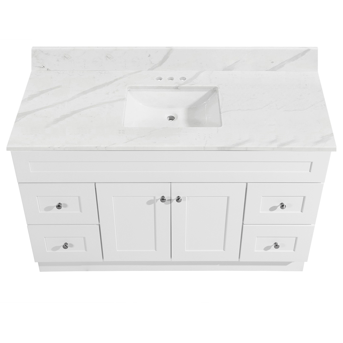 Newport Vanity Marble Top 2-Door/4-Drwr 60in x 21in White