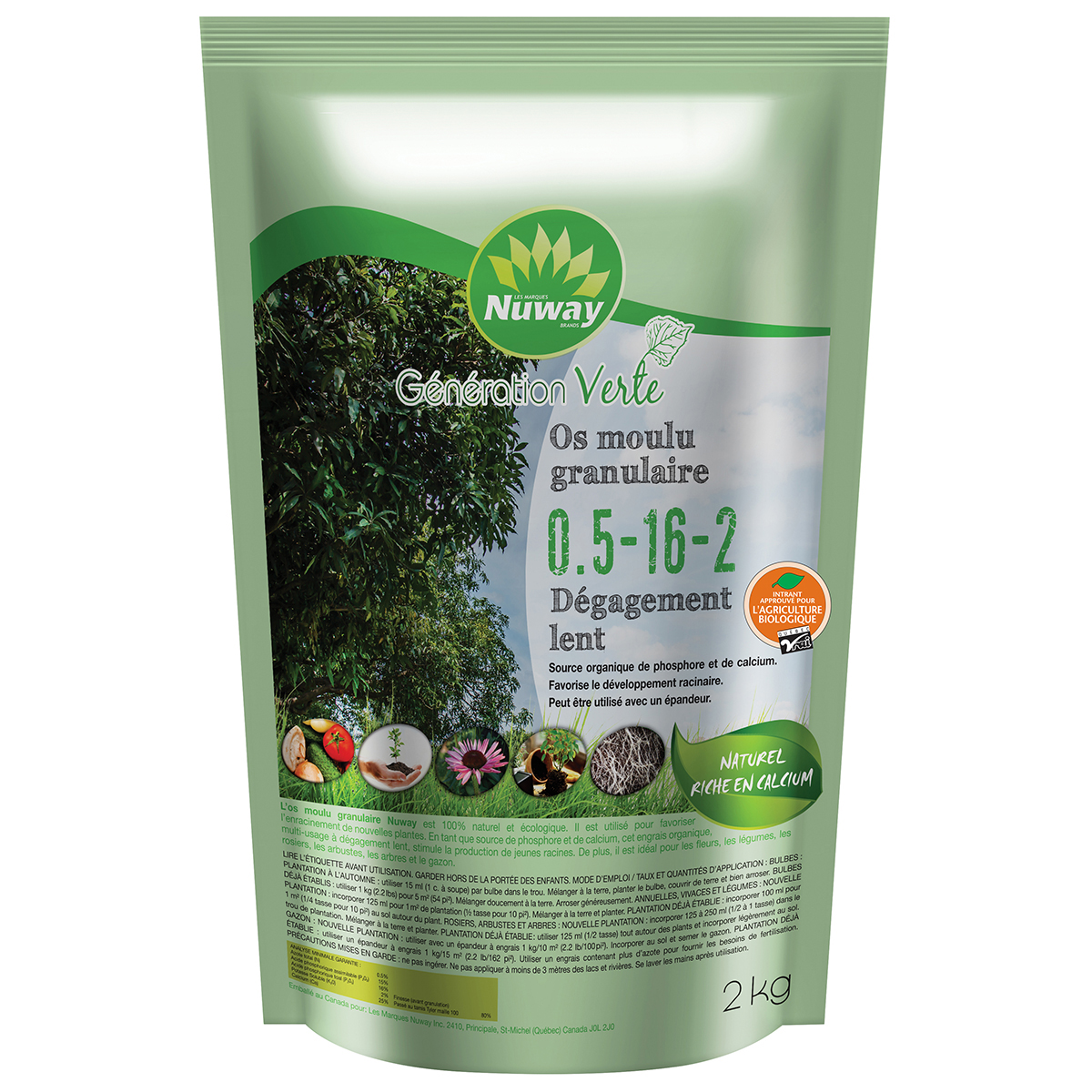 Contains ground bone put into granules for easier spreading. Thanks to the phosphorus and calcium it contains; Nuway granular ground bone promotes root growth during transplants.