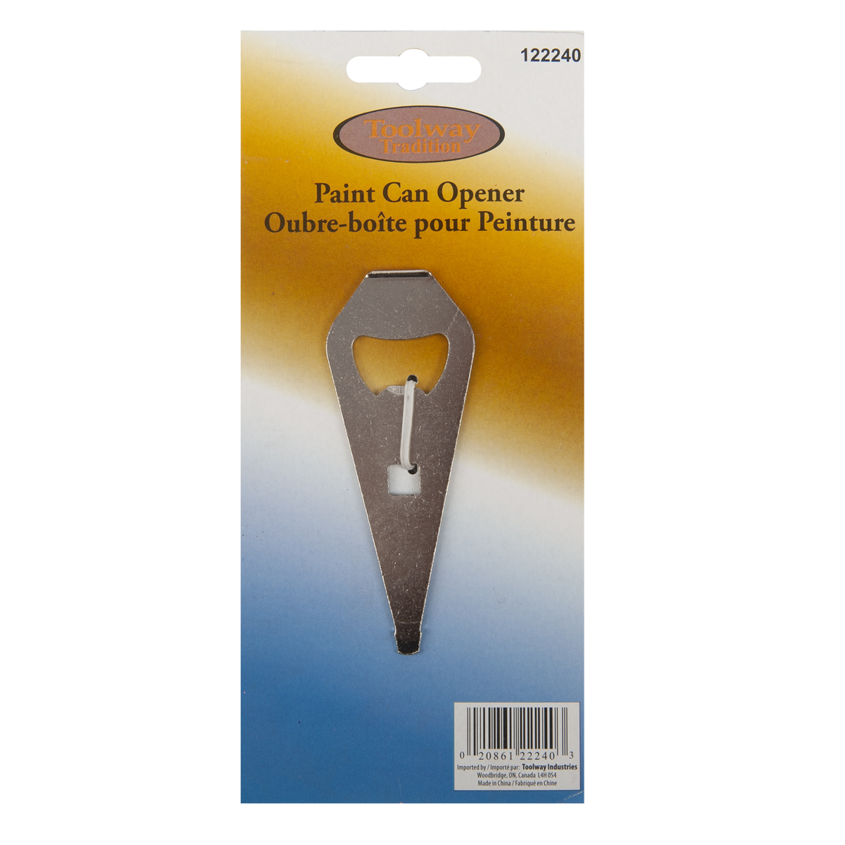 Handy paint can opener designed to easily pry open paint cans without damage.