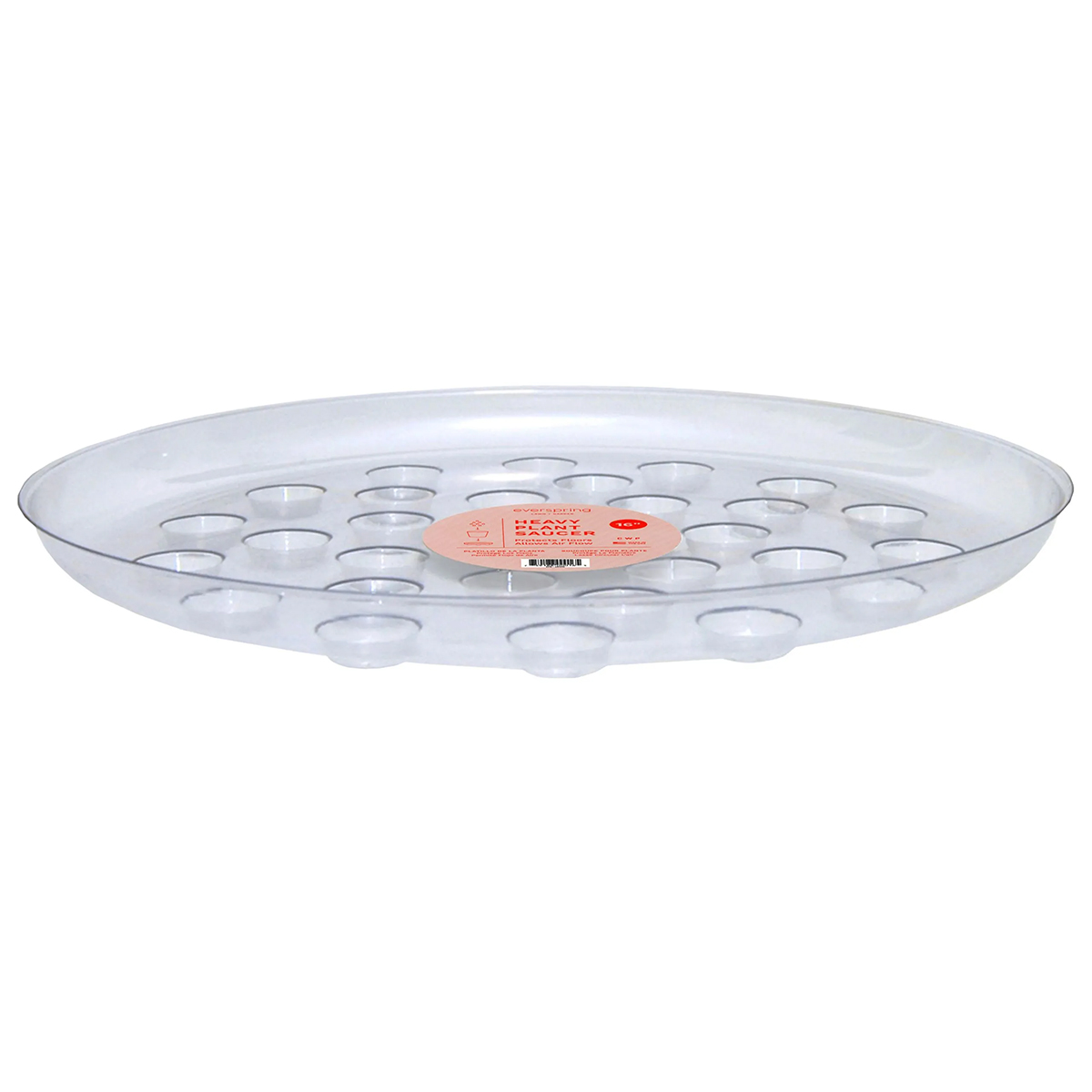 Our Clear Designer Series Heavy Plant Saucers protect surfaces via the footed-design; which allows airflow under the plant; guarding against moisture stains.
