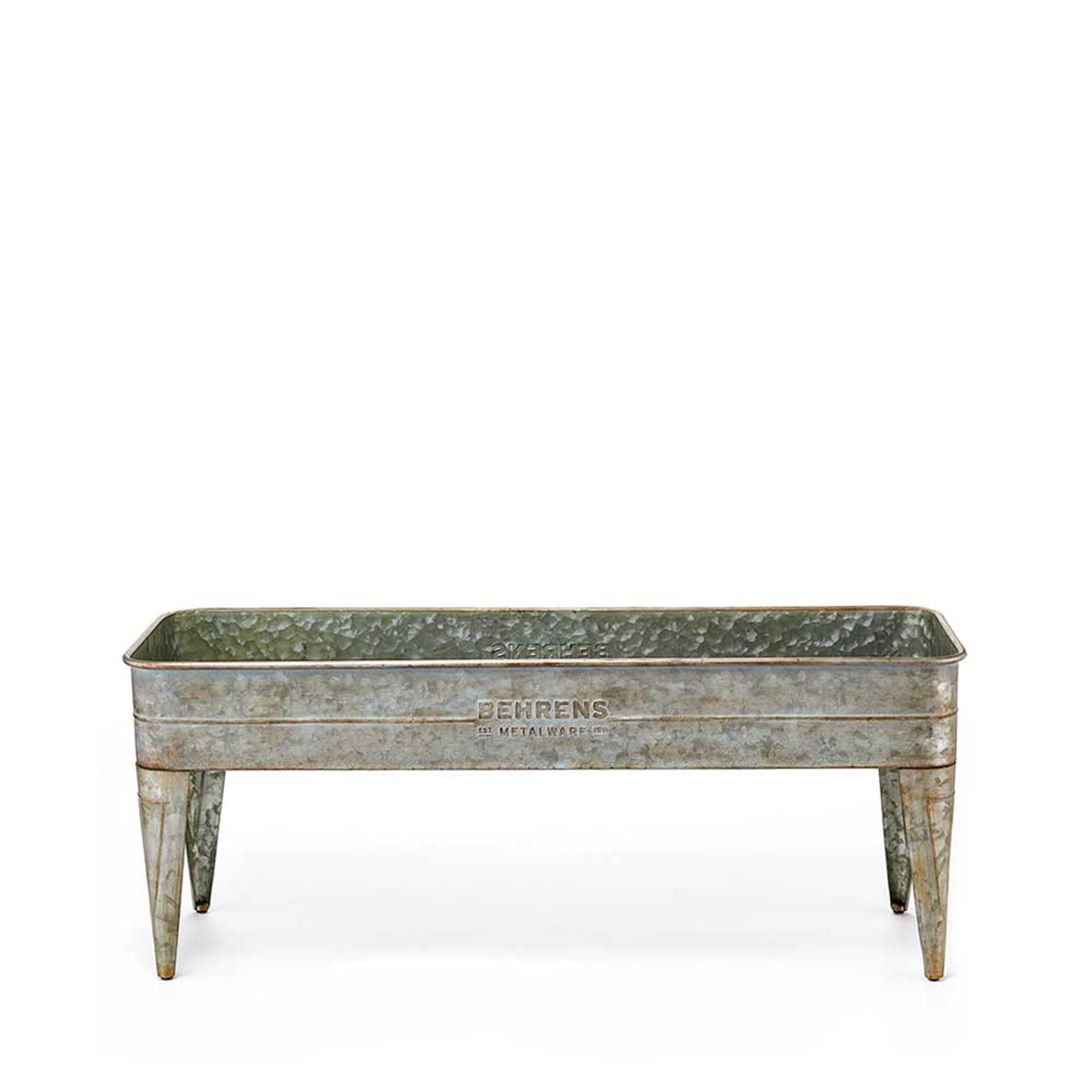 Hand–painted; aged galvanized steel provides a beautiful; rustic look both decorative and functional for this 30in planter with legs.
