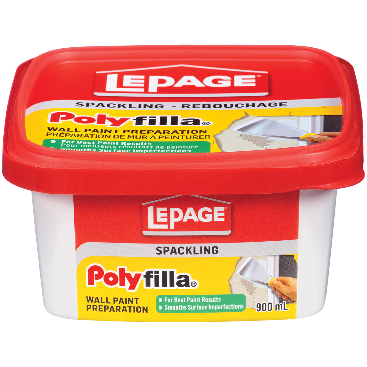 LePage® Polyfilla® wall paint preparation is a ready to use; extra fine patching compound for repairing surface damage to interior walls. Ideal for smoothing surface imperfections and filling shallow cracks and holes. The creamy; off-white paste spreads easily; dries fast and sands to a super fine finish that is smooth; hard and dent resistant. It has low odor and wet filler can be easily cleaned with water. Polyfilla® wall paint preparation is also paintable and sandable once fully dry.