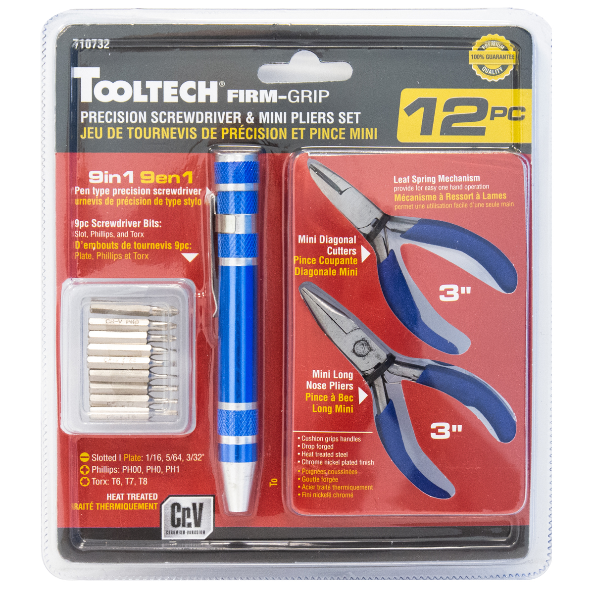 Set includes: (1) 9-In-1 Screwdriver mini; (1) 3in Mini diagonal cutter pliers; and (1) 3in Mini long nose pliers.